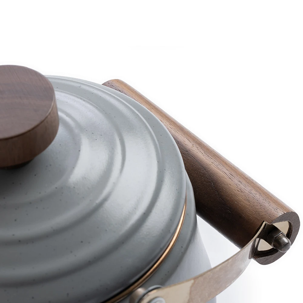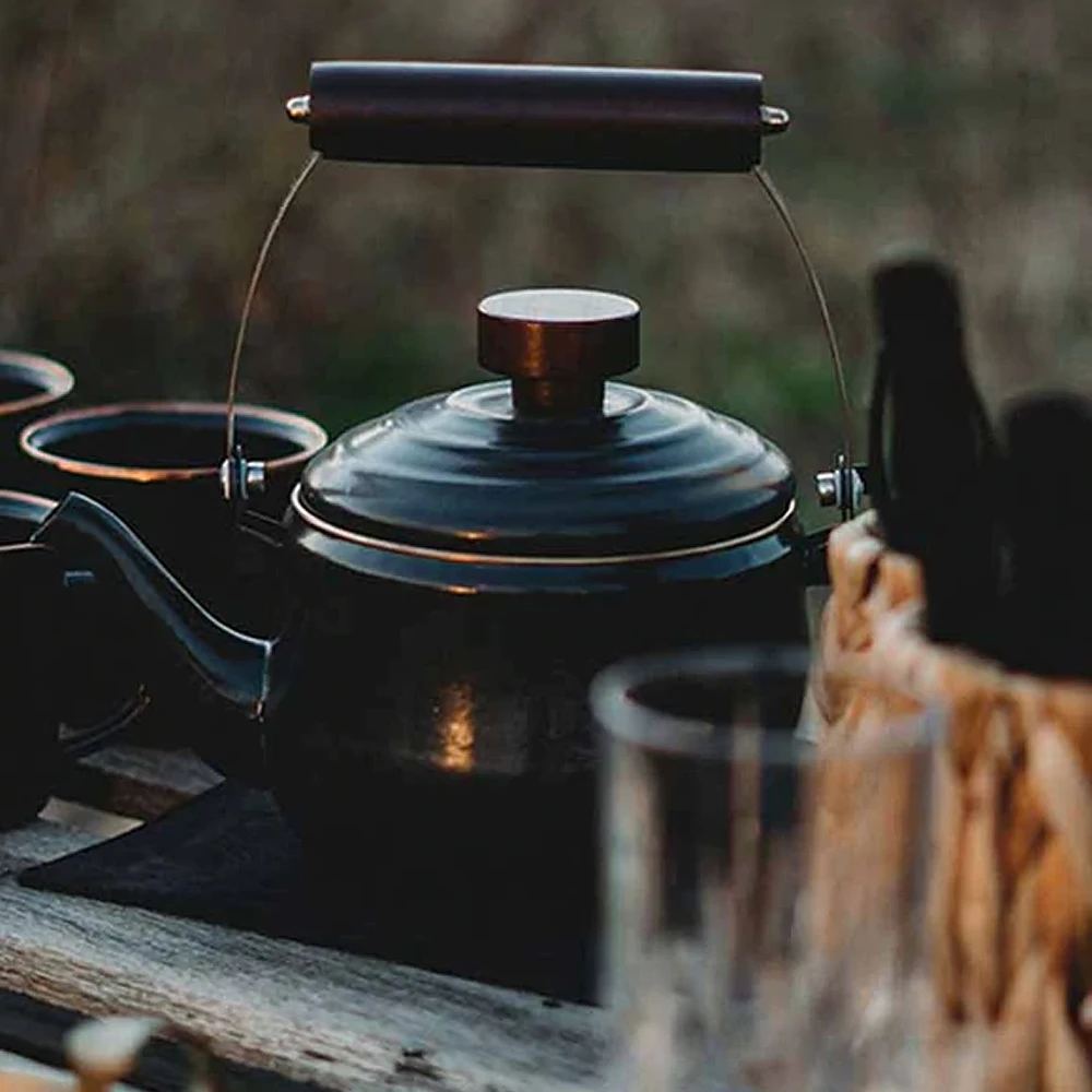 A beautiful statement piece for your camp kit or home kitchen. Ideal for quickly heating water for camp coffee, tea, hot chocolate, and more. The Teapot features a hand-finished, baked stainless steel trim that creates a copper-like patina finish and matches our full enamelware line.