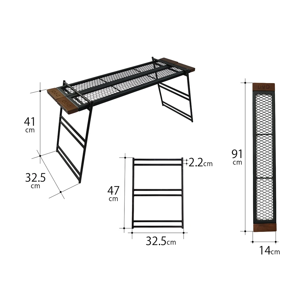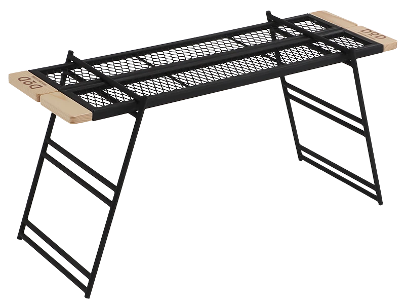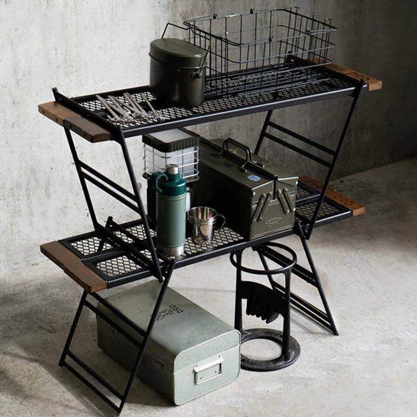 A tough iron table that can be used even on a bonfire. It is designed with a depth that is easy to use as a storage rack. It can be used in various shapes by purchasing additional plates and legs or combining one-by wood, and it has a functional and cool appearance not only for camping but also for interior decoration.