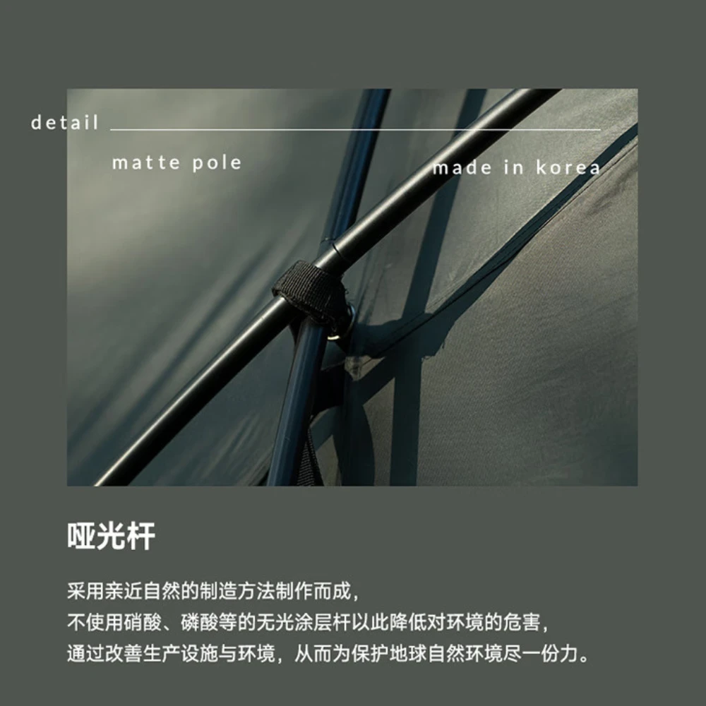 - Pole: Center pole: AL ø19 | Front/Rear/Side pole: AL ø16 | Inner ridge pole: AL ø14.5 | Canopy pole: AL ø16