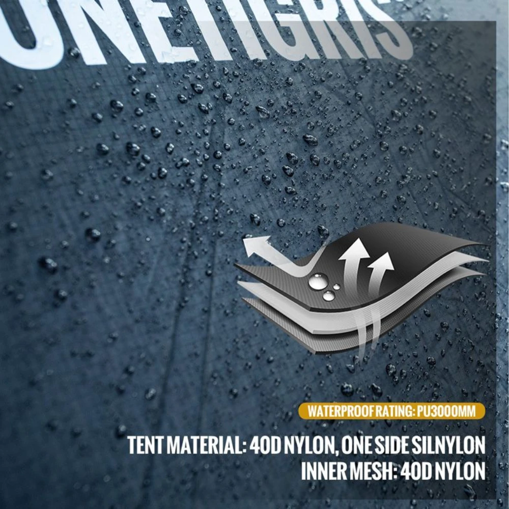 - Material: 40D Nylon Fabric, Aluminum Alloy Tent Poles