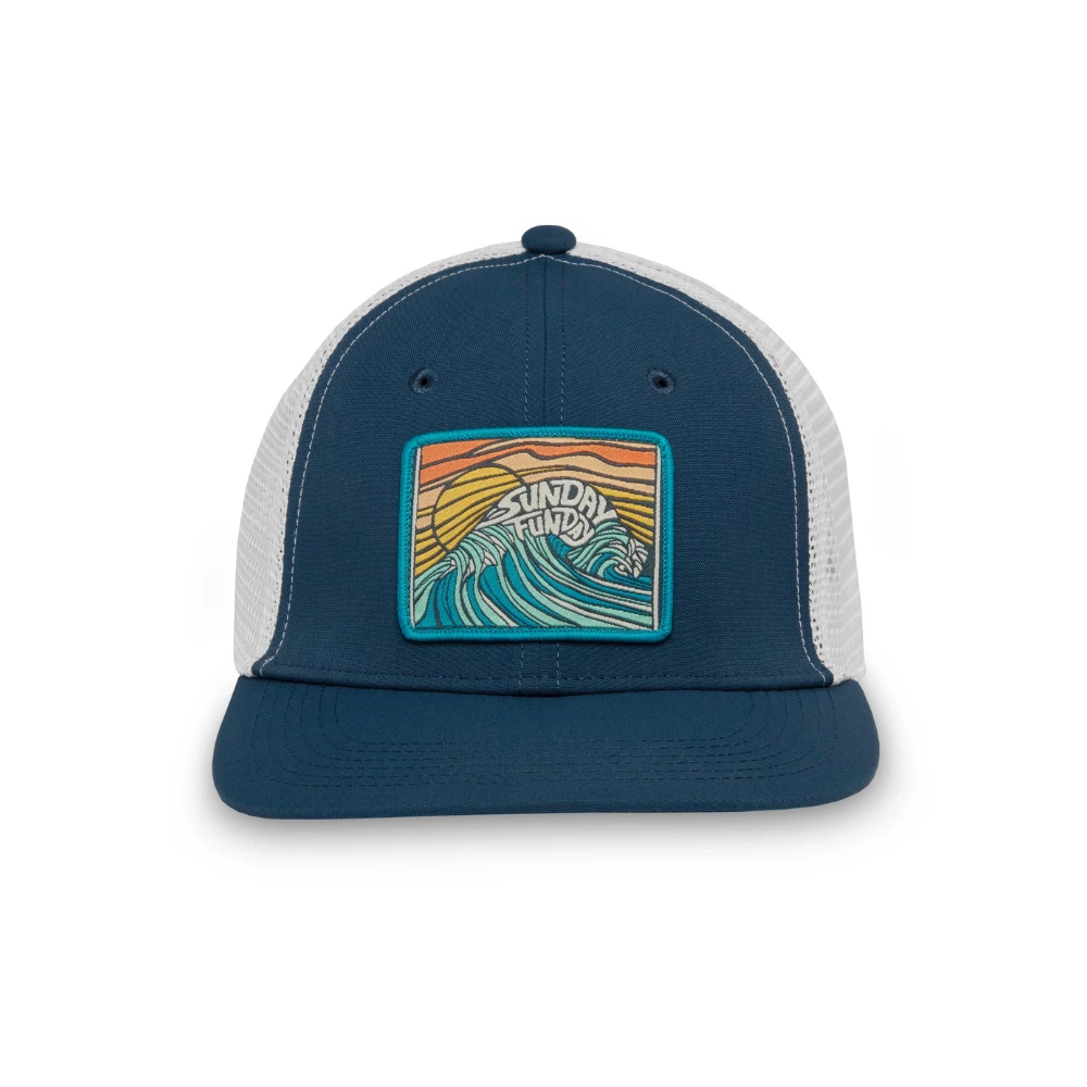 Designed to make every day feel like a weekend, the Sunday Funday Trucker captures the very best ocean vibes, so you can take them with you any day of the week. 100% recycled, bluesign®-certified fabric and a PFAS-free durable water repellent finish elevate this trucker, while the wicking sweatband, StretchBack Sizing, and mesh ventilation keep you cool and comfortable.