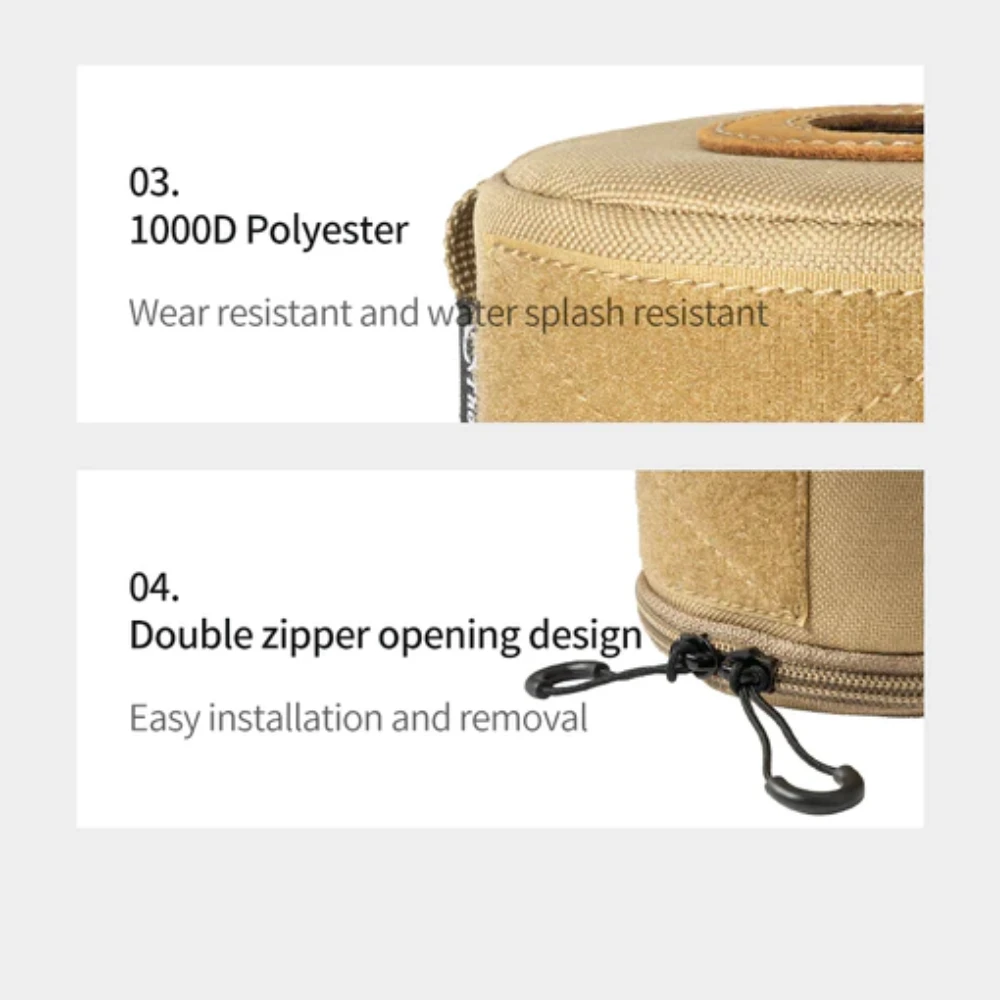 - Made with 1000D Polyester which tear/wear resistance and water splash proof